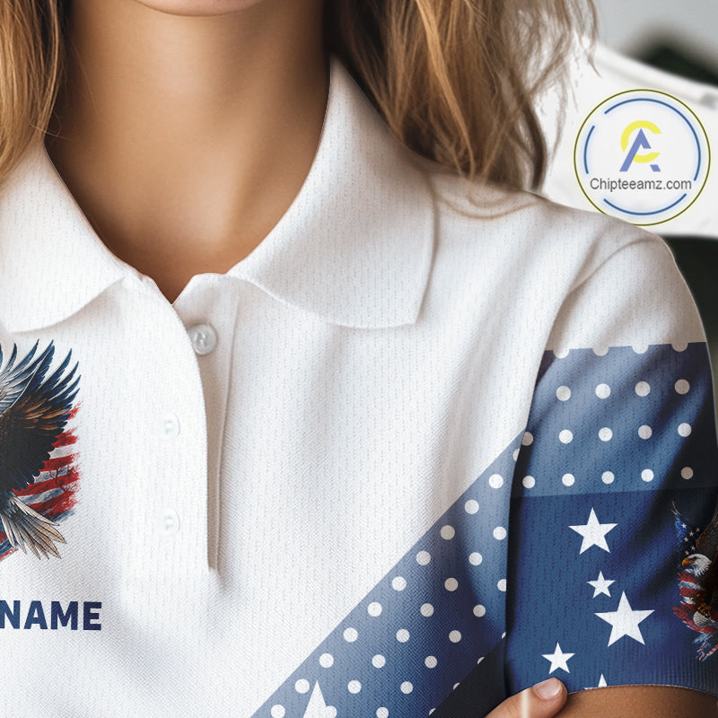 Red, White and Blue American Flag Eagle Custom Women golf polo shirt, patriotic ladies golf outfit NQS10104