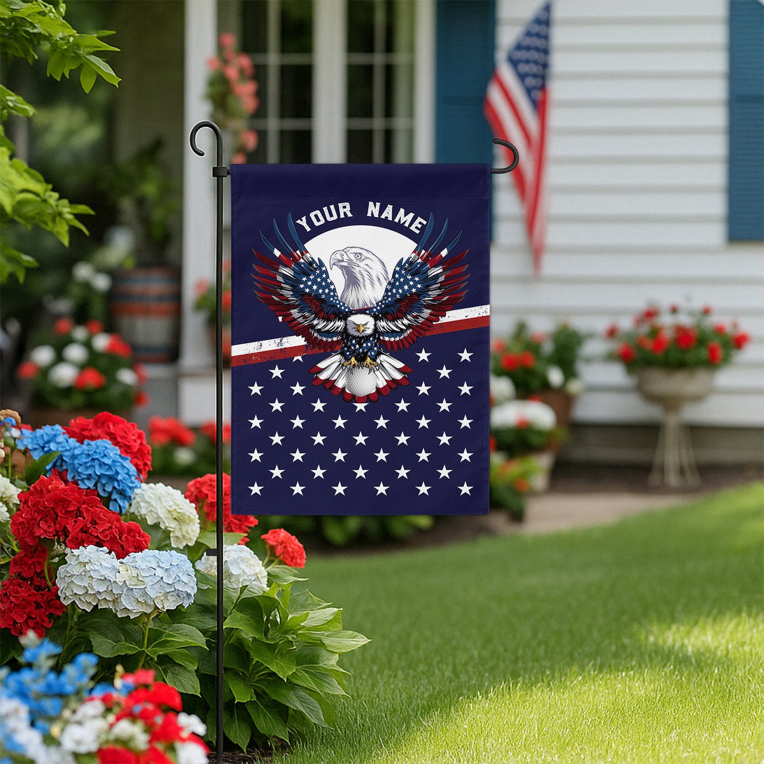 Red, white, and blue American flag Eagle patriotic Custom name Golf Garden Flag, unique golf gifts NQS9907