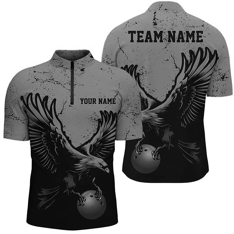 Custom Gray Eagle Men Bowling Team Shirts Grunge Vintage Bowling Team Jerseys Outfits IPHW5849
