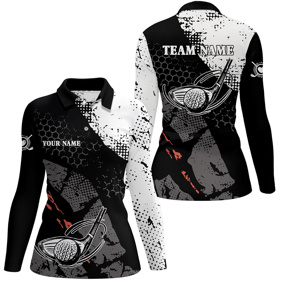 Black and white Womens golf polo shirts custom team name vintage golf clubs womens golf tops NQS6315