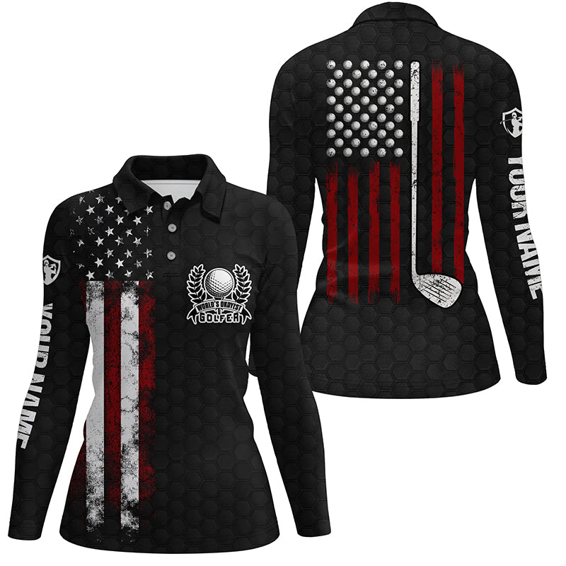 Vintage American flag black Womens golf polo shirts custom patriotic golf clubs best ladies golf wear NQS6241