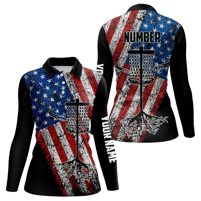 Vintage American Flag Women Disc golf polo shirts custom name and number patriotic disc golf apparel NQS9200
