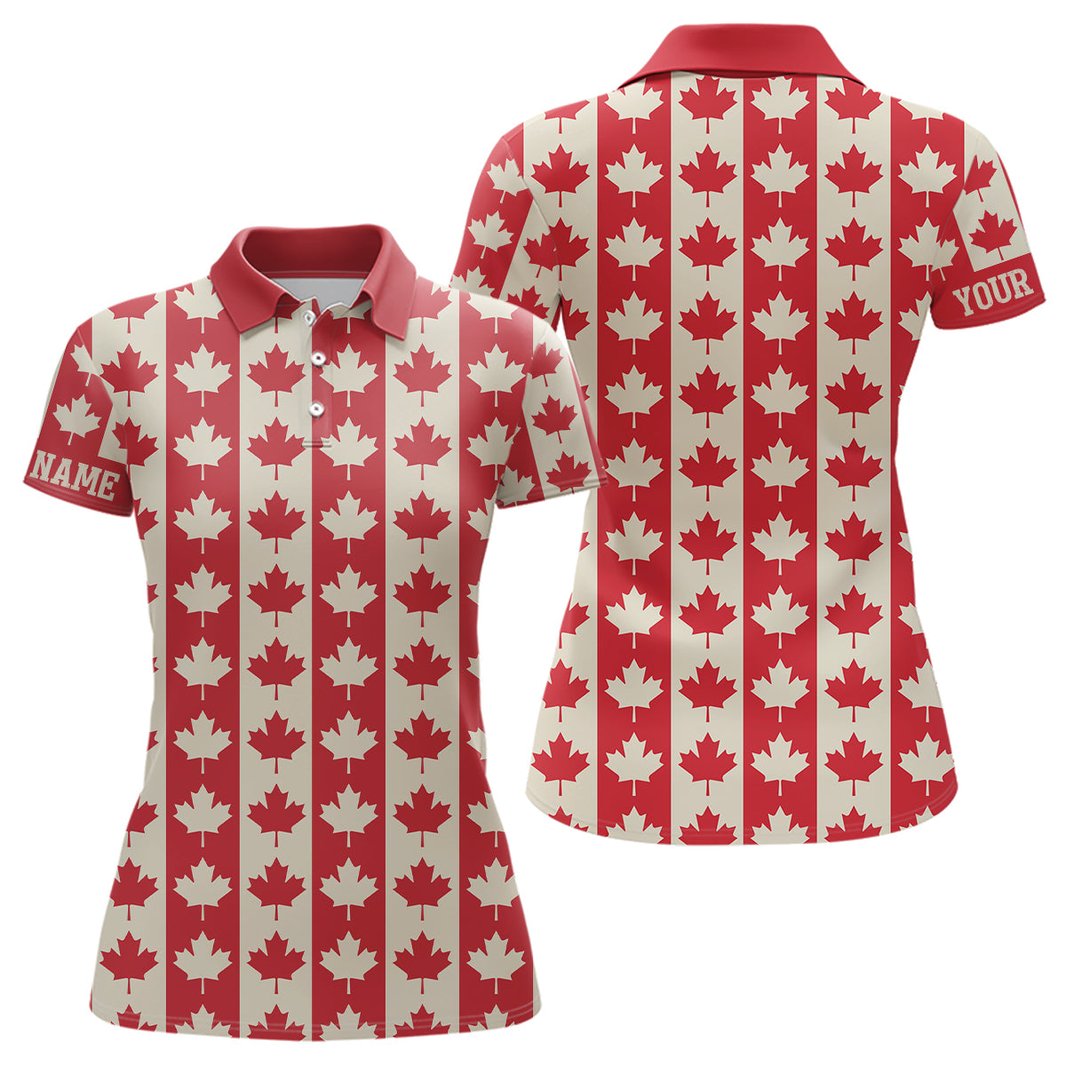 Canadian Flag Vintage Maple Leaf Golf Polo Shirts Custom Patriotic Golf Shirts For Women LDT0465