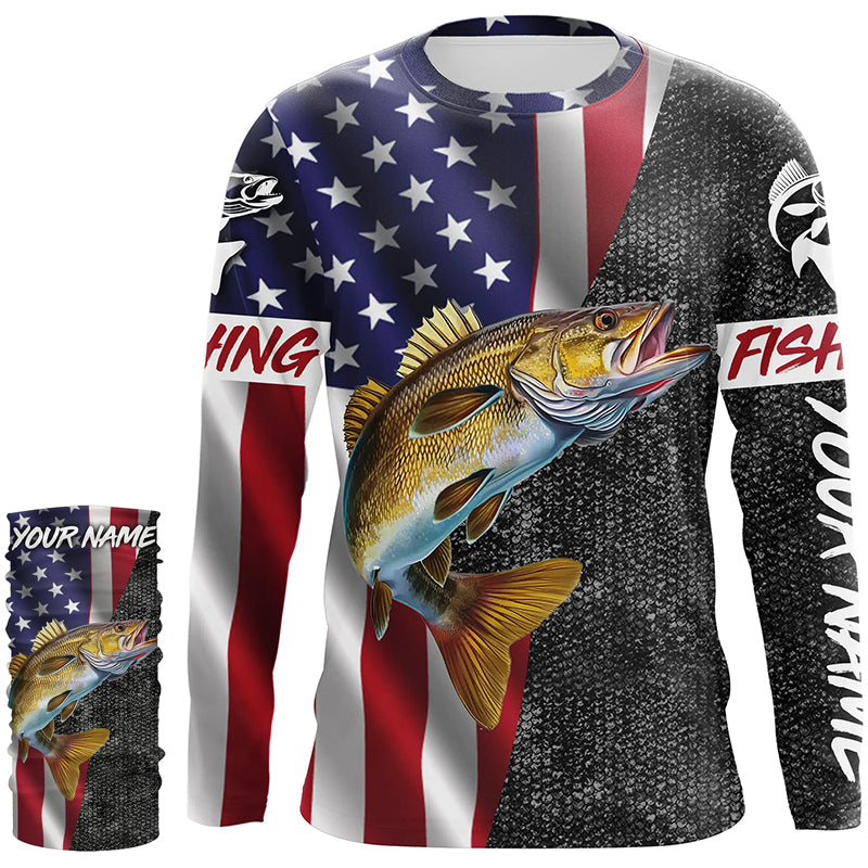 American Flag Walleye Fishing Custom long sleeve performance Fishing Shirts, Walleye Fishing jerseys NQS4925