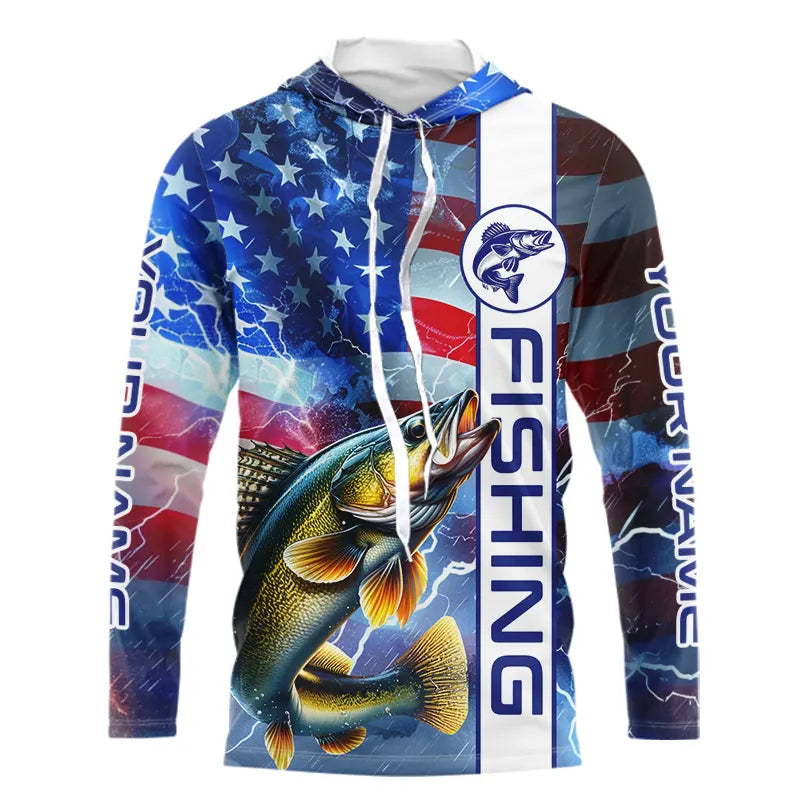 American Flag Walleye lightning Long Sleeve Fishing Shirts custom Patriotic Walleye fishing jerseys NQS9561