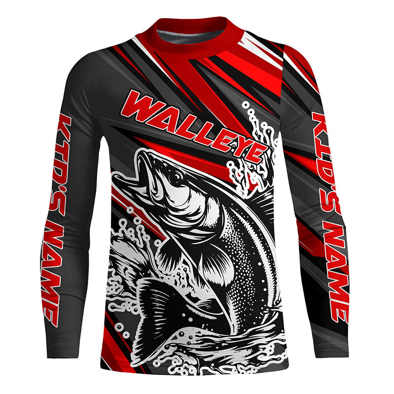 Personalized Walleye Fishing Jerseys, Walleye Fishing Long Sleeve Tournament Fishing Shirts | Red IPHW5597