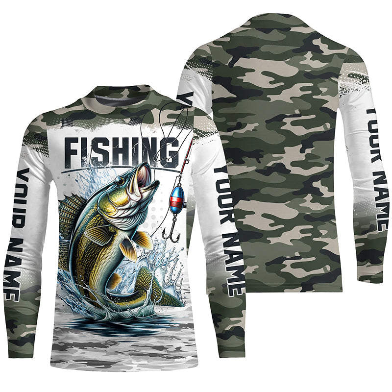 Walleye Fishing Camo Custom Long Sleeve Fishing Shirts, Personalized Walleye Fishing Jerseys IPHW5999