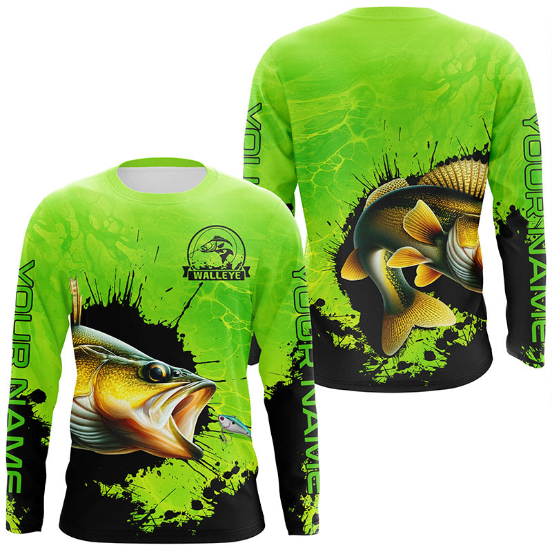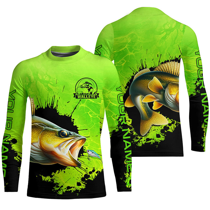 Personalized Walleye fishing Performance long sleeve Fishing Shirts, Walleye fishing jerseys | Green NQS6941