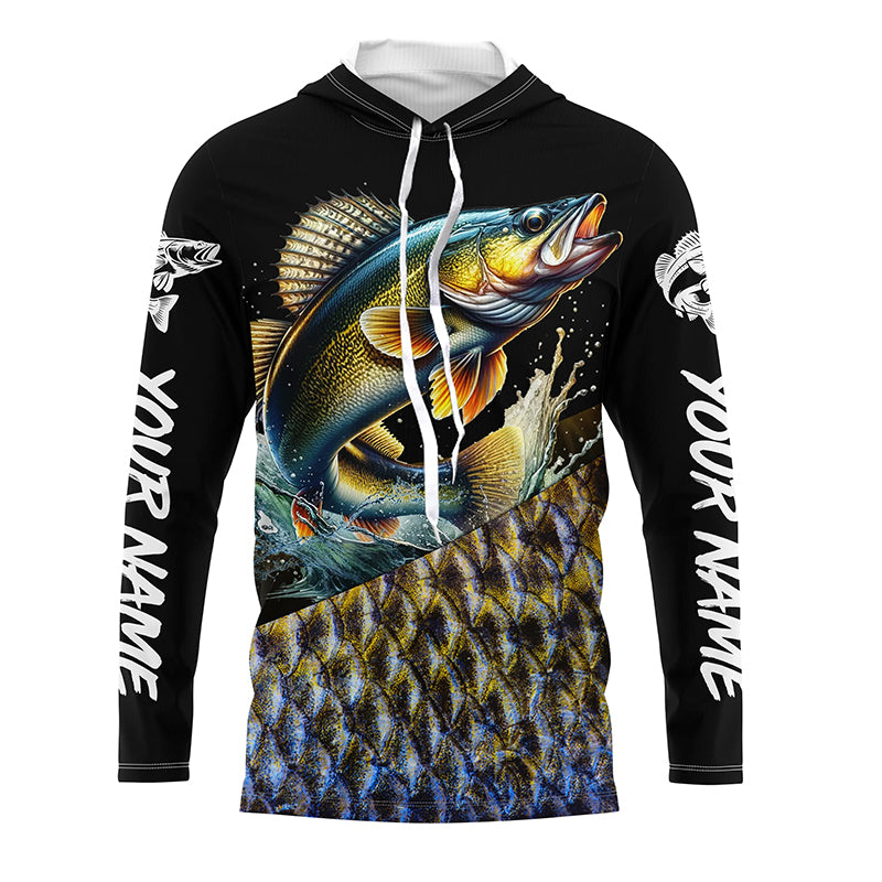 Personalized Walleye scales Fishing jerseys, Custom Long Sleeve Performance walleye Fishing Shirts NQS4949