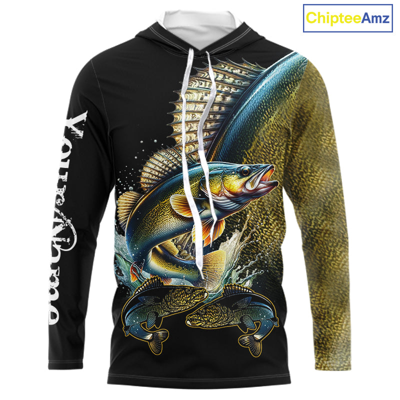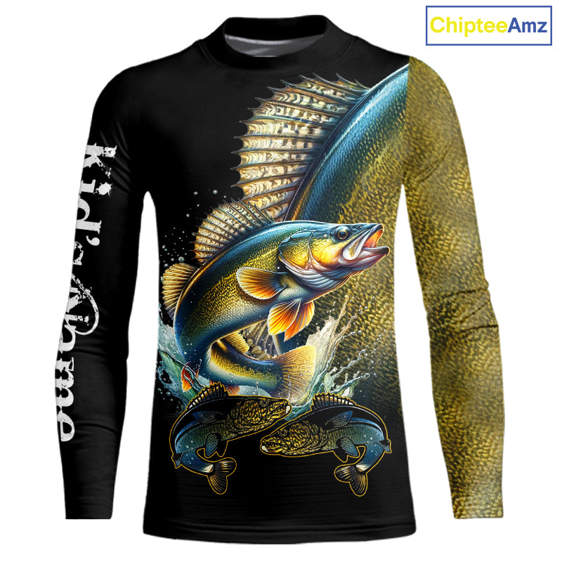 Walleye fishing yellow scales Custom walleye fishing shirts tournament fishing jerseys NQS11031