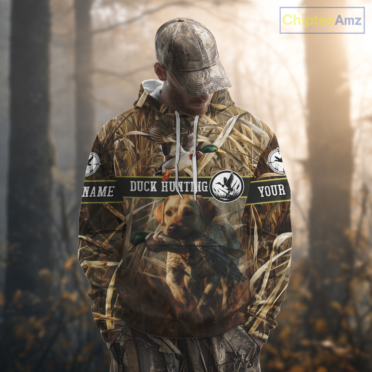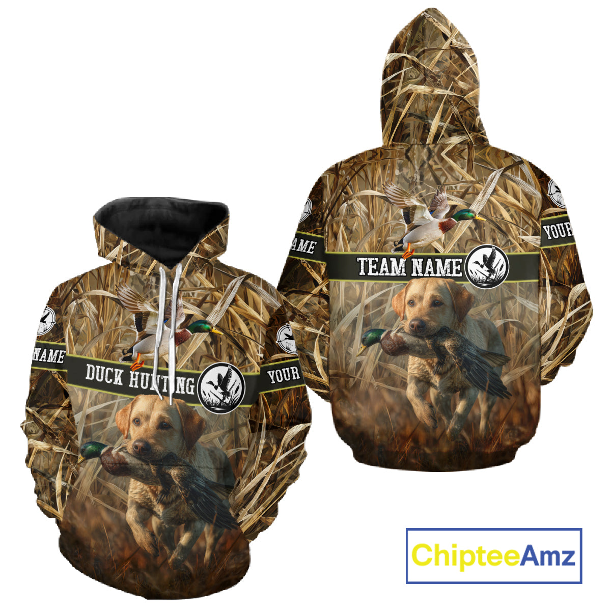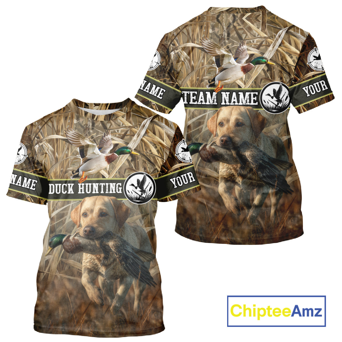 Duck Hunting Camo Shirt with Labrador Retriever – Waterfowl Hunting Clothes, Gifts for Hunters NBT44