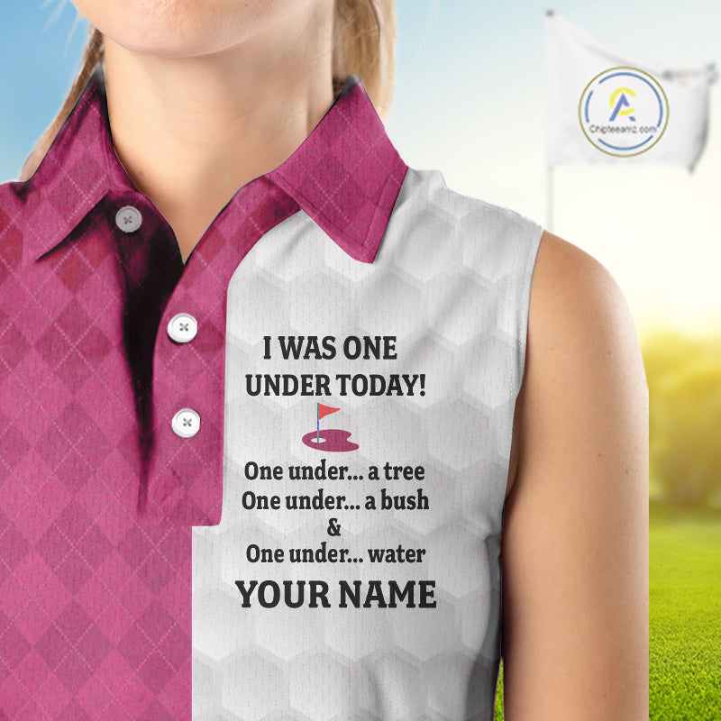 Pink white Womens Sleeveless polo shirt custom I was one under today one under a tree, a bush & water NQS10091