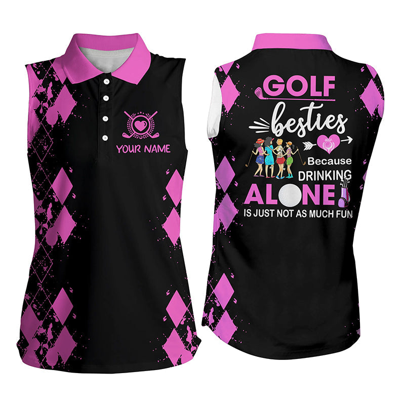 Womens sleeveless polo shirt custom golf besties drinking alone is just not as much fun| Multicolor NQS7139