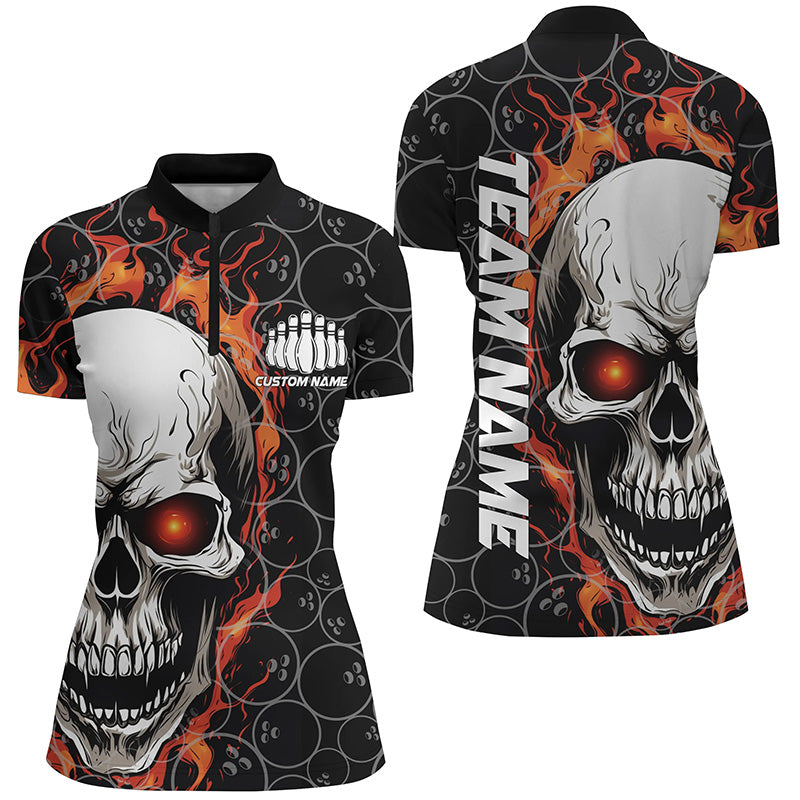 Personalized Skull Bowling Shirt For Women Custom Team'S Name Flame Bowler Jerseys | Red IPHW5010