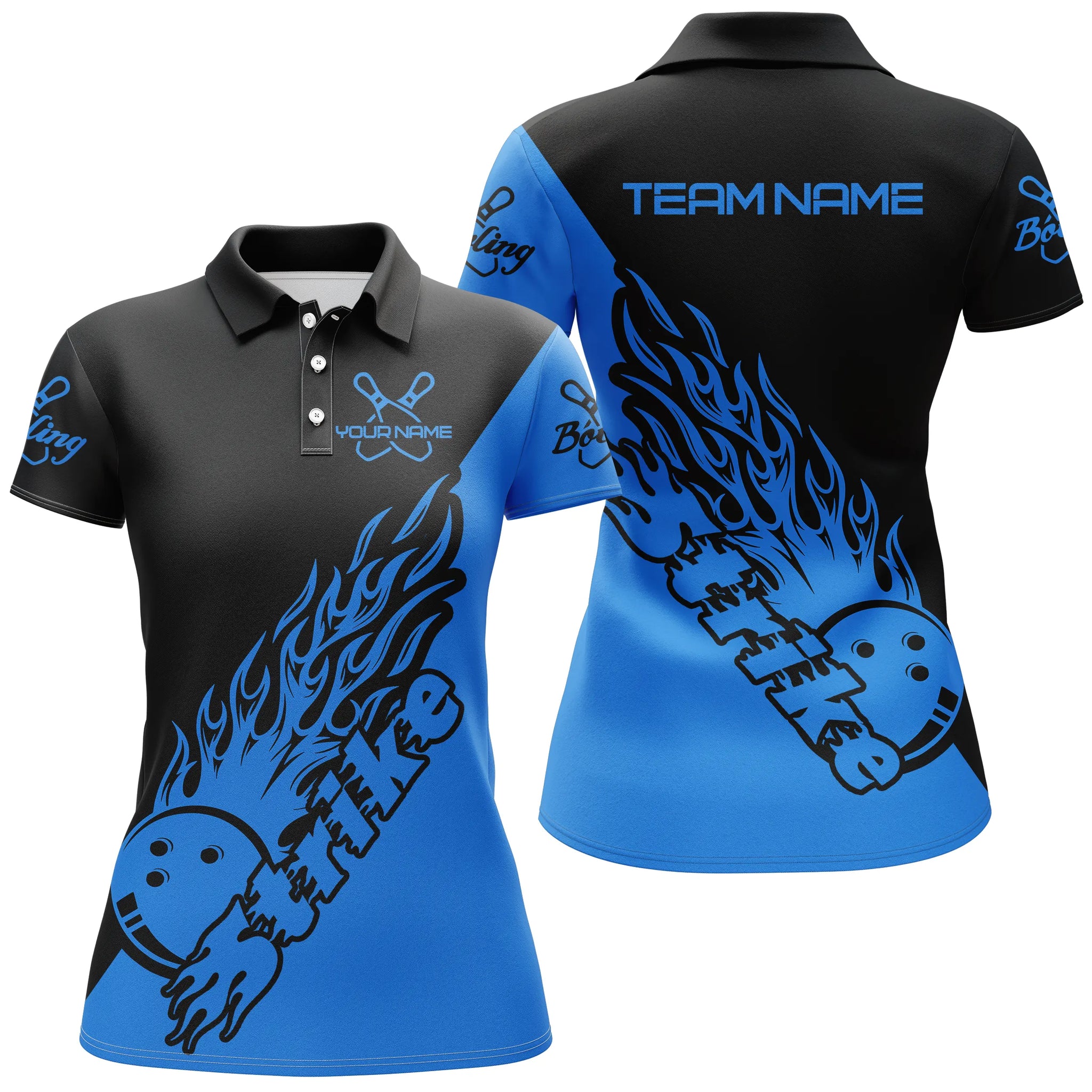 Custom Bowling Shirts For Women, Bowling Team Shirts Bowling Strike | Black And Blue IPHW5167