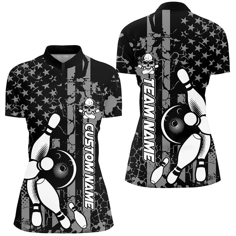 American Flag Black And White Custom Womens Bowling Shirts, Bowling Team Jerseys IPHW5211