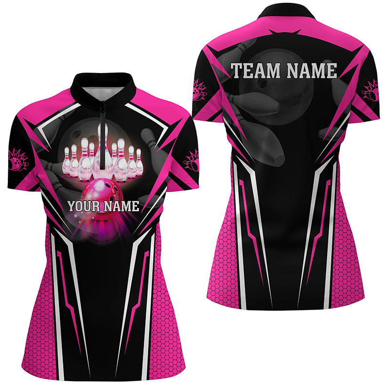 ✔️ Custom Women's Bowling Shirts Our uniquely designed bowling polo and quarter-zip shirts are ideal for proud female bowlers who want to make a bold statement. With a stylish form and distinctive design, these shirts set you apart from the rest, highlighting your passion and confidence in bowling. Add your personal touch to create a one-of-a-kind shirt that carries your unique imprint.