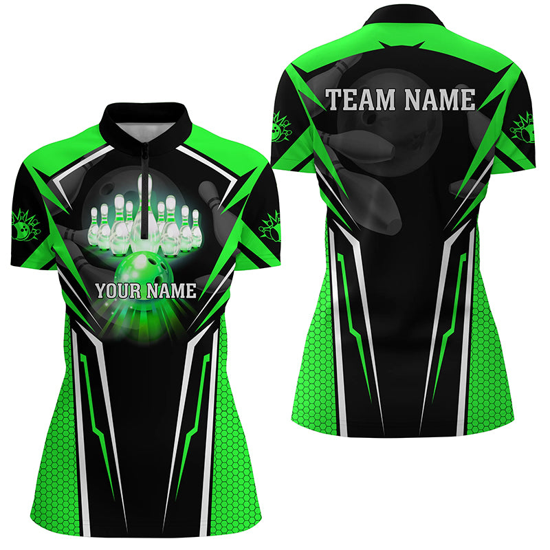 ✔️ Custom Women's Bowling Shirts Our uniquely designed bowling polo and quarter-zip shirts are ideal for proud female bowlers who want to make a bold statement. With a stylish form and distinctive design, these shirts set you apart from the rest, highlighting your passion and confidence in bowling. Add your personal touch to create a one-of-a-kind shirt that carries your unique imprint.