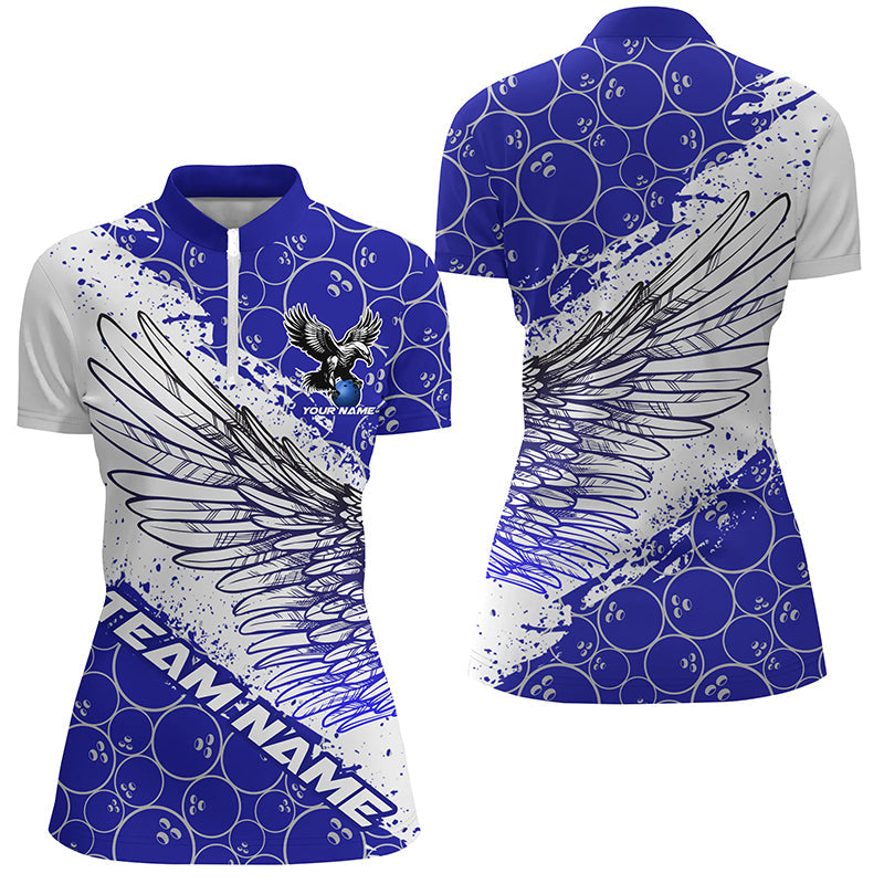 Custom Bowling Shirts For Women, Team Name Bowling Jerseys Eagle Wings | Blue IPHW5817