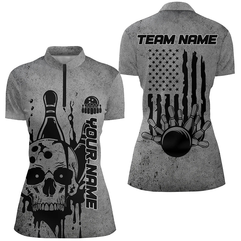 Custom American Flag Skull Bowling Shirts For Women, Patriotic Team Bowling Jerseys IPHW5845