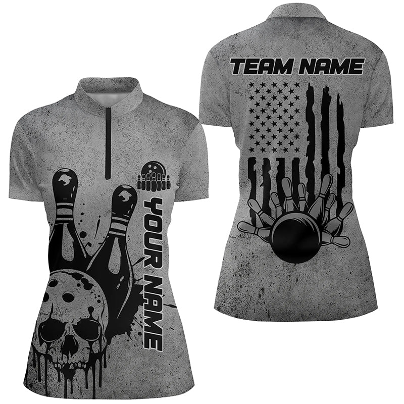 Custom American Flag Skull Bowling Shirts For Women, Patriotic Team Bowling Jerseys IPHW5846
