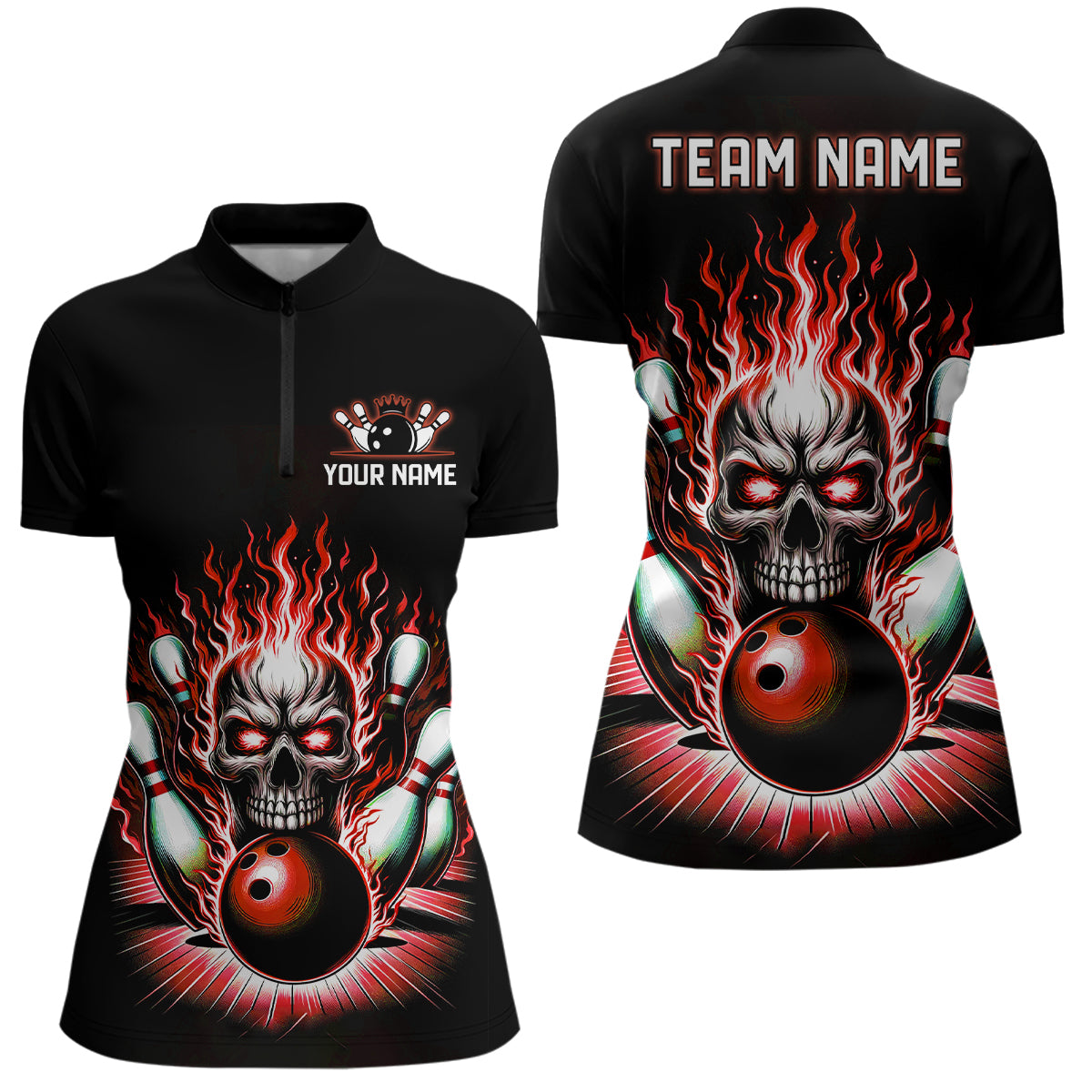 ✔️ Custom Women's Bowling Shirts Our uniquely designed bowling polo and quarter-zip shirts are ideal for proud female bowlers who want to make a bold statement. With a stylish form and distinctive design, these shirts set you apart from the rest, highlighting your passion and confidence in bowling. Add your personal touch to create a one-of-a-kind shirt that carries your unique imprint.