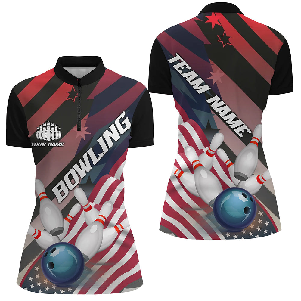 American Flag Strike Bowling Team Shirts For Women, Patriotic Bowling Team Jerseys IPHW6195
