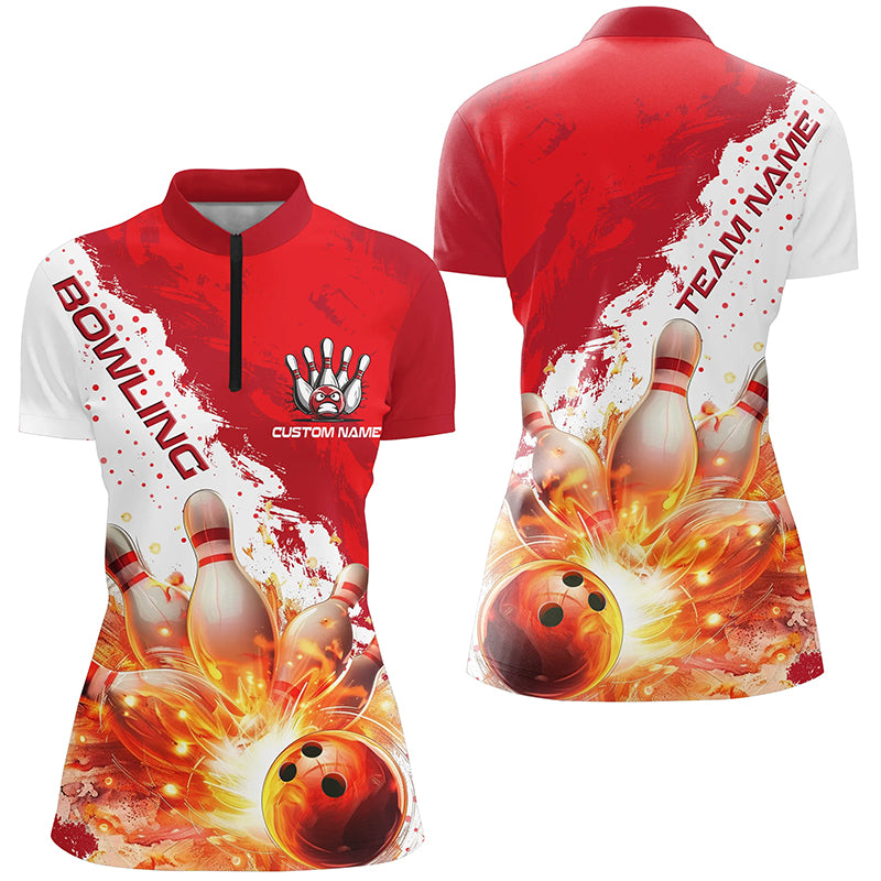 Red Flame Strike Bowling Custom Team Shirts For Women, Bowlers Outfit Bowling Team Jersey IPHW6254