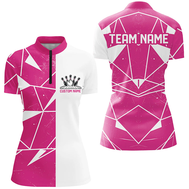 Pink Geometric Custom Ladies Bowling Team Shirts, Bowling Jerseys For Bowlers IPHW6265