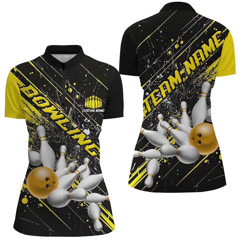 ✔️ Custom Women's Bowling Shirts Our uniquely designed bowling polo and quarter-zip shirts are ideal for proud female bowlers who want to make a bold statement. With a stylish form and distinctive design, these shirts set you apart from the rest, highlighting your passion and confidence in bowling. Add your personal touch to create a one-of-a-kind shirt that carries your unique imprint.