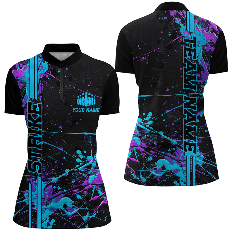 ✔️ Custom Women's Bowling Shirts Our uniquely designed bowling polo and quarter-zip shirts are ideal for proud female bowlers who want to make a bold statement. With a stylish form and distinctive design, these shirts set you apart from the rest, highlighting your passion and confidence in bowling. Add your personal touch to create a one-of-a-kind shirt that carries your unique imprint.