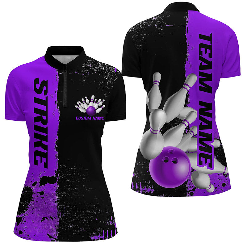 Black And Purple Strike Bowling Team Shirts For Women, Custom Bowling Jerseys For Bowlers IPHW6438