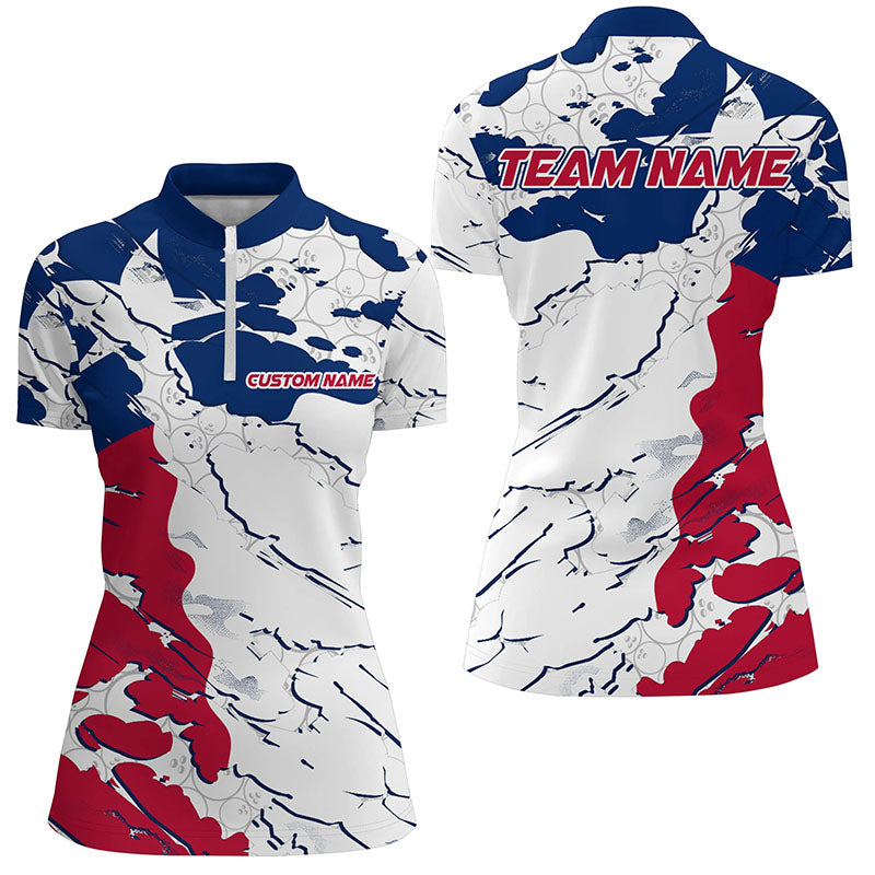 Bowling Ball Pattern Texas Flag Custom Ladies Bowling Team Shirts, Patriotic Bowling Jerseys IPHW6494