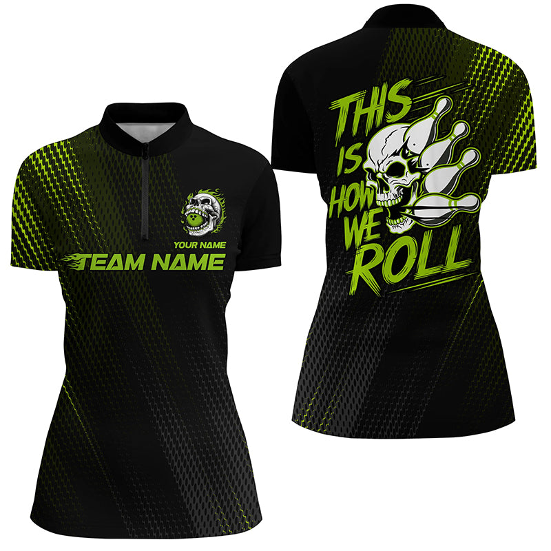 This Is How We Roll Custom Skull Bowling Team Shirts For Women, Bowling League | Green IPHW6738