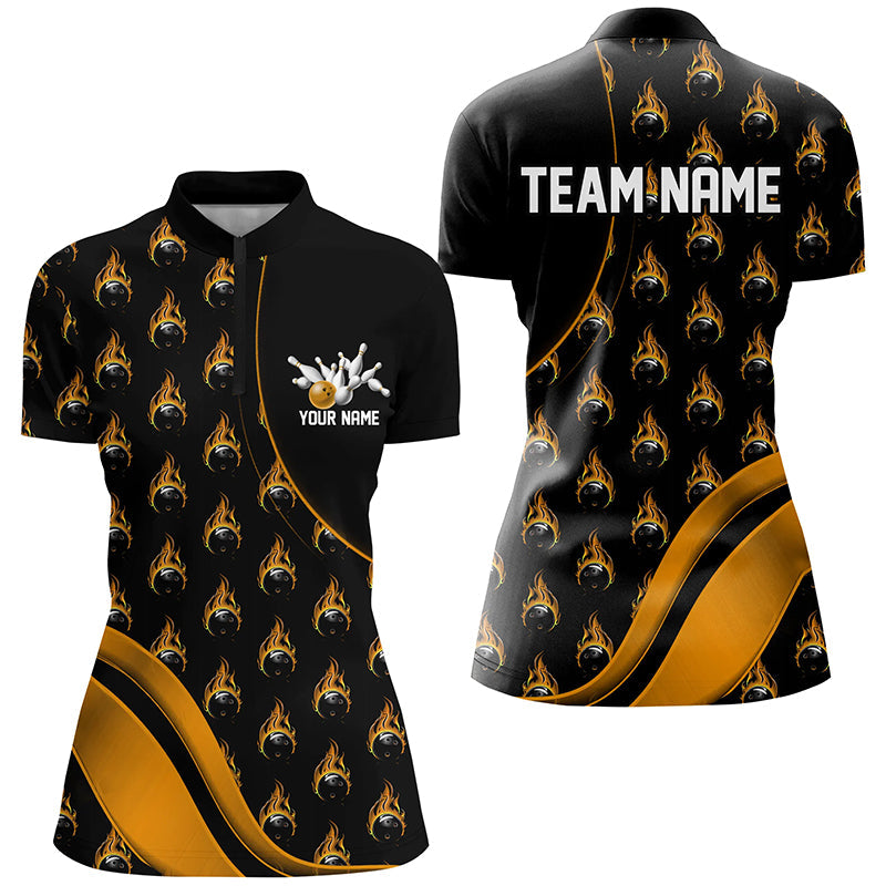 Custom Gold Flame Bowling Shirts For Women, Personalized Team Bowling Shirts IPHW6960
