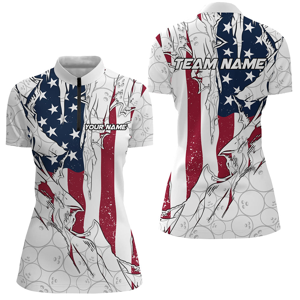 American Flag Custom Patriotic Bowling Shirts For Women, Team Bowling League Shirts Uniform IPHW6990