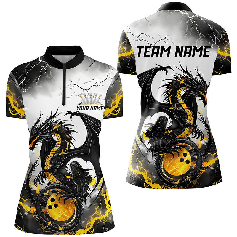Black And Gold Thunder Lightning Custom Dragon Ladies Bowling Shirts, Bowling League Shirts IPHW7061