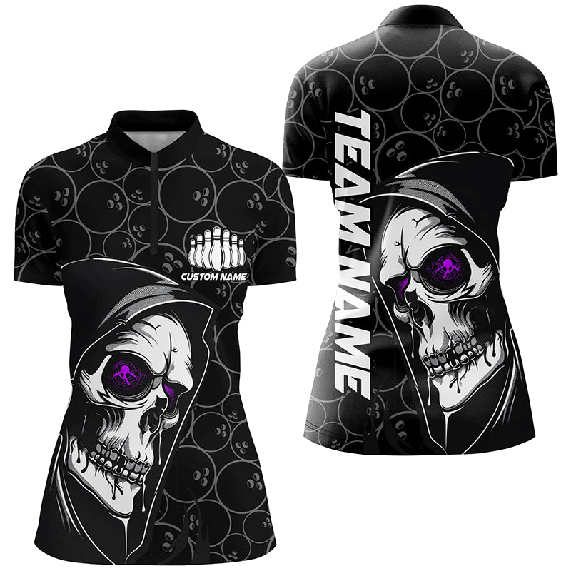 Custom Halloween Skull Bowling Shirts For Women, Bowling League Shirts | Purple IPHW7082