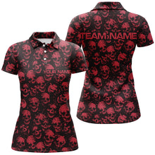 Custom Black And Red Skull Halloween Ladies Bowling Shirts, Halloween Outfits For Bowlers IPHW7163