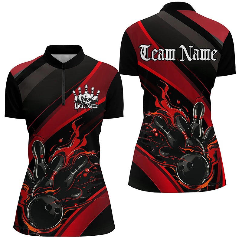 ✔️ Custom Women's Bowling Shirts Our uniquely designed bowling polo and quarter-zip shirts are ideal for proud female bowlers who want to make a bold statement. With a stylish form and distinctive design, these shirts set you apart from the rest, highlighting your passion and confidence in bowling. Add your personal touch to create a one-of-a-kind shirt that carries your unique imprint.