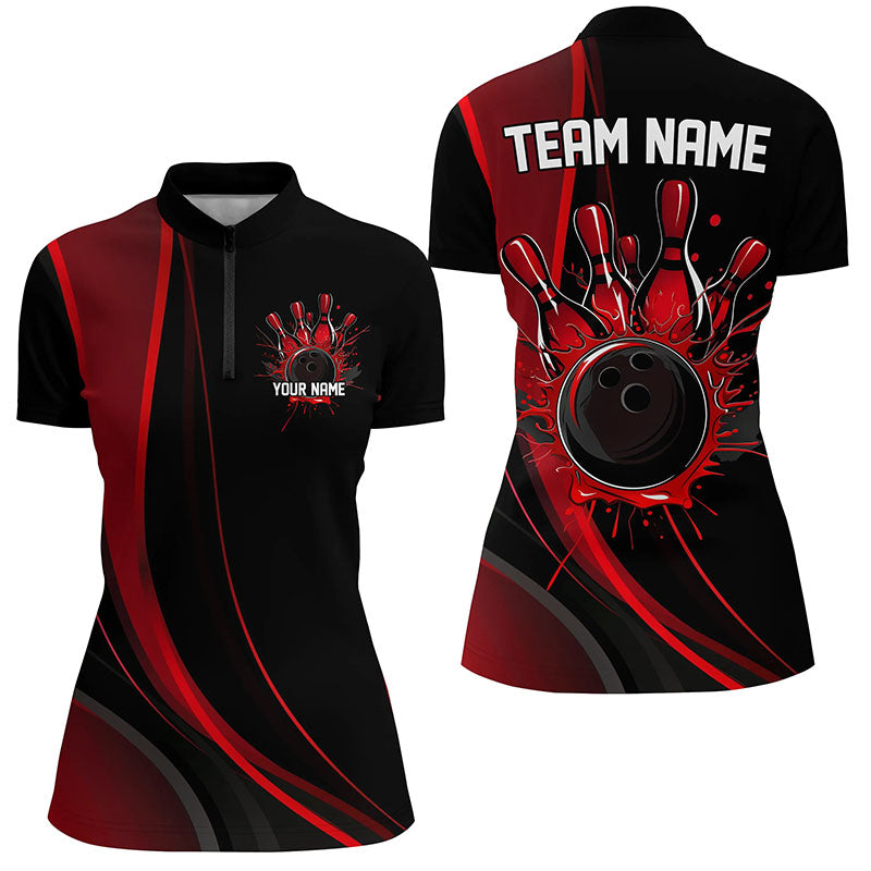 Custom Black And Red Ladies Bowling Shirts, Classic Bowling Uniform Bowling League Shirts IPHW7267
