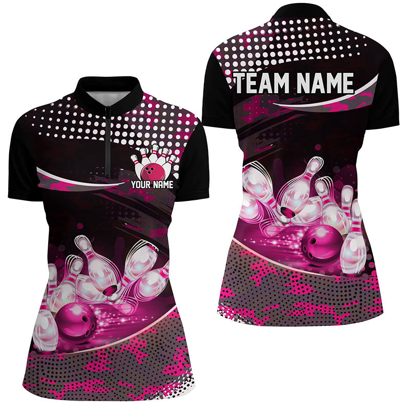 ✔️ Custom Women's Bowling Shirts Our uniquely designed bowling polo and quarter-zip shirts are ideal for proud female bowlers who want to make a bold statement. With a stylish form and distinctive design, these shirts set you apart from the rest, highlighting your passion and confidence in bowling. Add your personal touch to create a one-of-a-kind shirt that carries your unique imprint.