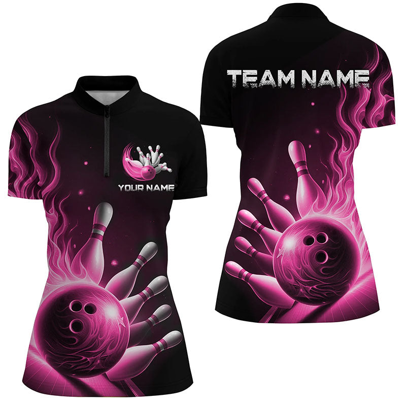 ✔️ Custom Women's Bowling Shirts Our uniquely designed bowling polo and quarter-zip shirts are ideal for proud female bowlers who want to make a bold statement. With a stylish form and distinctive design, these shirts set you apart from the rest, highlighting your passion and confidence in bowling. Add your personal touch to create a one-of-a-kind shirt that carries your unique imprint.