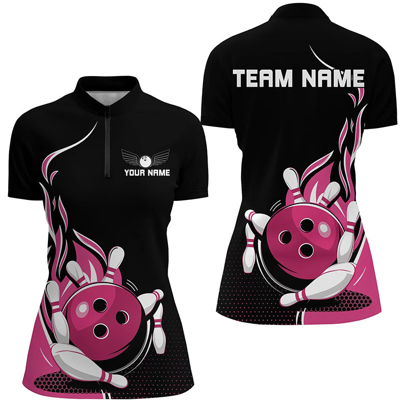 ✔️ Custom Women's Bowling Shirts Our uniquely designed bowling polo and quarter-zip shirts are ideal for proud female bowlers who want to make a bold statement. With a stylish form and distinctive design, these shirts set you apart from the rest, highlighting your passion and confidence in bowling. Add your personal touch to create a one-of-a-kind shirt that carries your unique imprint.
