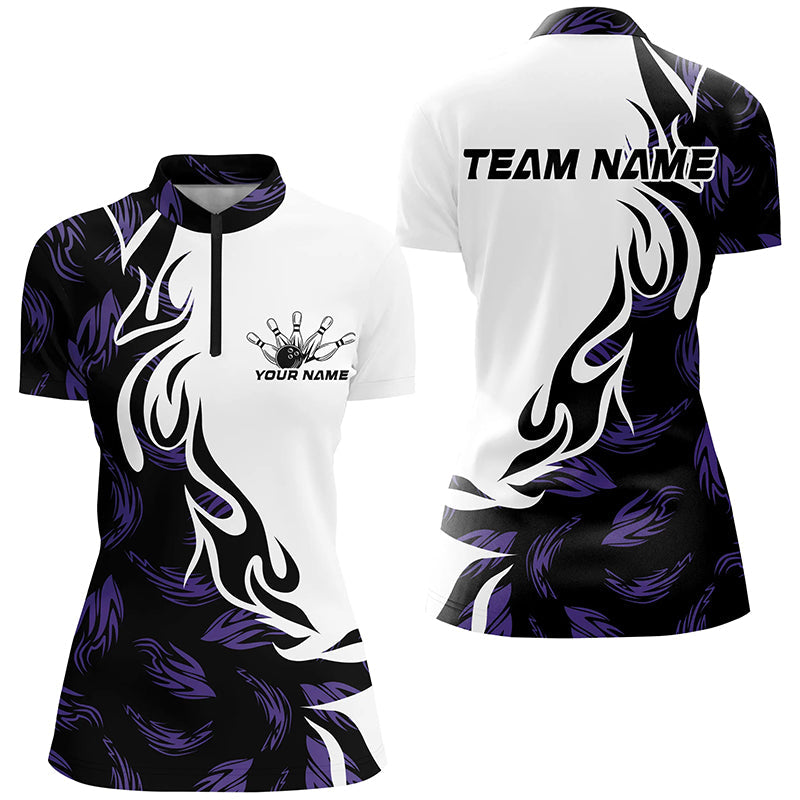 Black And Purple Custom Bowling Shirts For Women, Bowling Polo Bowling League Shirts IPHW7399