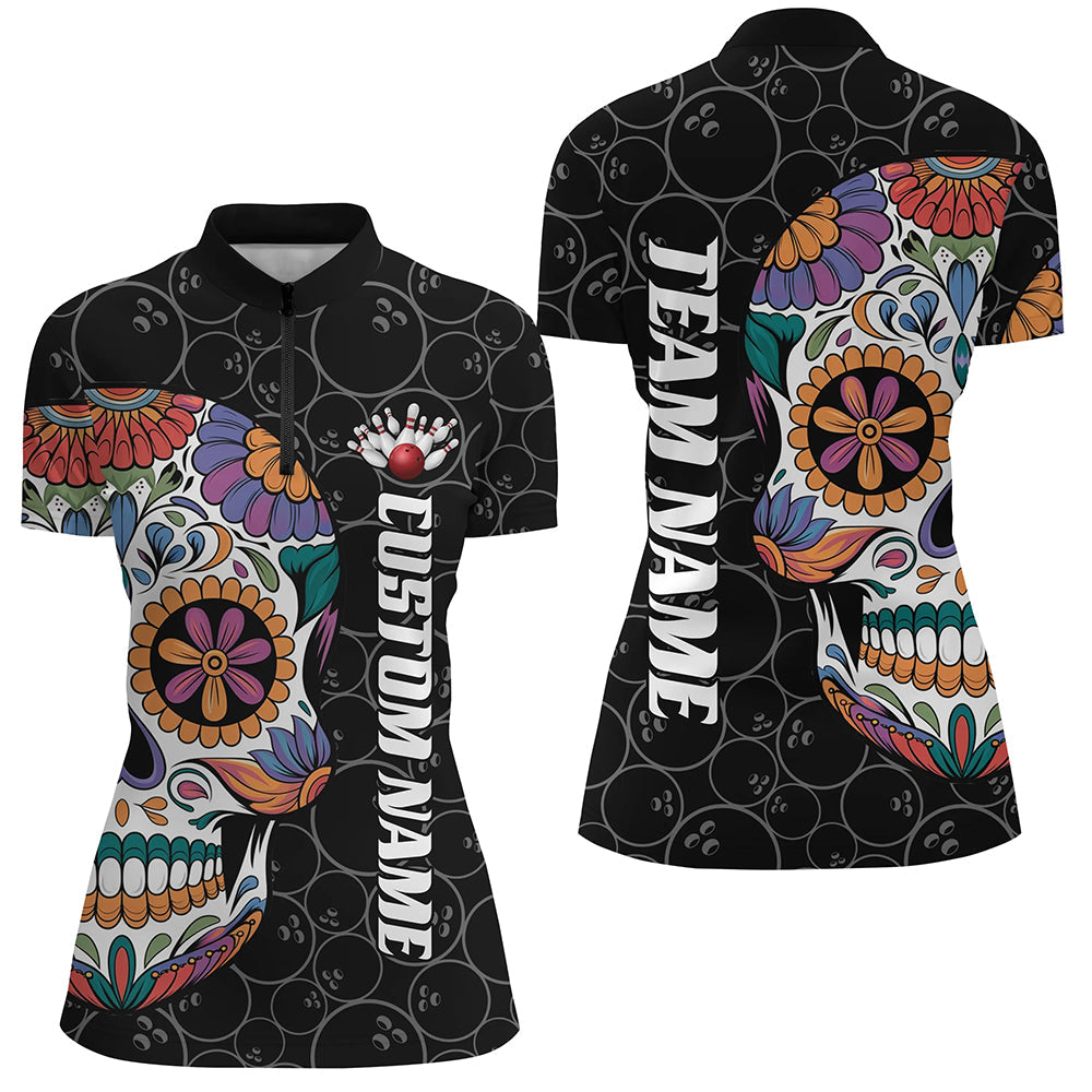 Custom Sugar Skull Ladies Bowling Shirts, Halloween Bowling Team Shirts Bowlers Outfits IPHW7428
