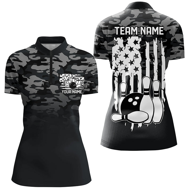 Gray Camo Custom Patriotic Bowling Team Shirts For Women, US Bowling League Shirt IPHW7435