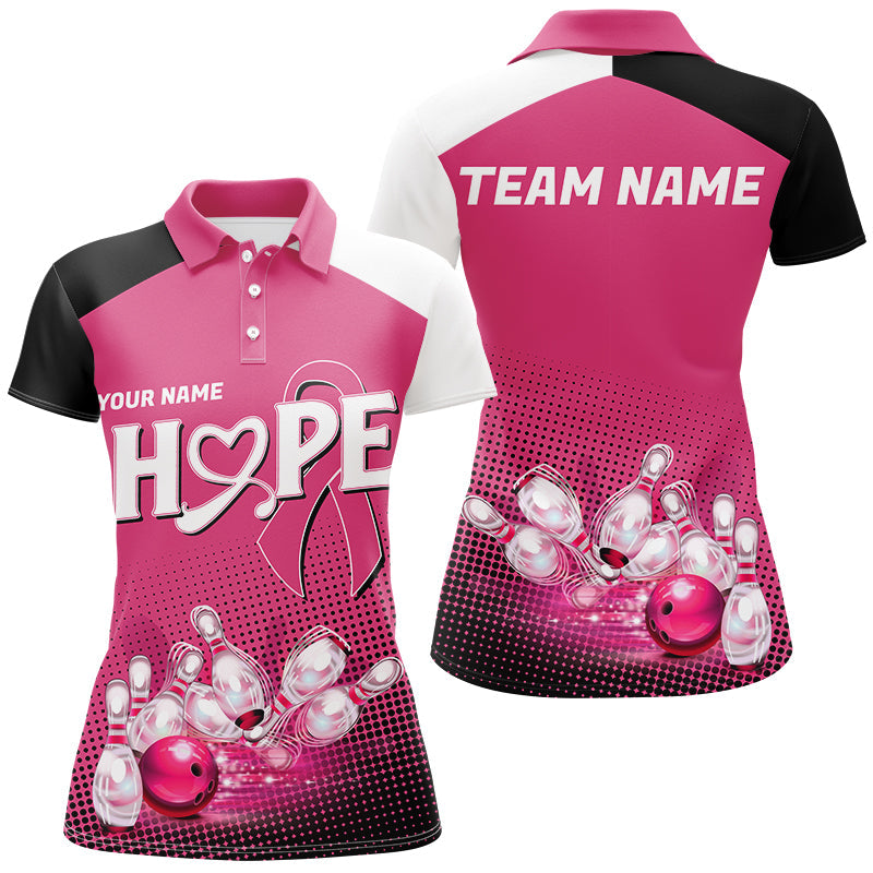 Custom Pink Ribbon Breast Cancer Bowling Shirts For Women, Hope Bowling Team Jerseys IPHW7514
