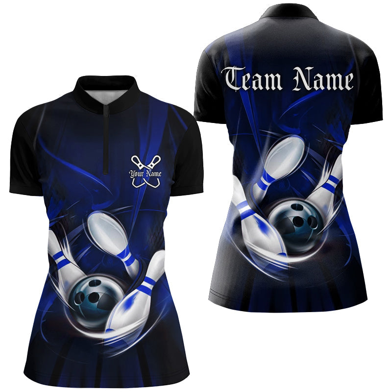 ✔️ Custom Women's Bowling Shirts Our uniquely designed bowling polo and quarter-zip shirts are ideal for proud female bowlers who want to make a bold statement. With a stylish form and distinctive design, these shirts set you apart from the rest, highlighting your passion and confidence in bowling. Add your personal touch to create a one-of-a-kind shirt that carries your unique imprint.
