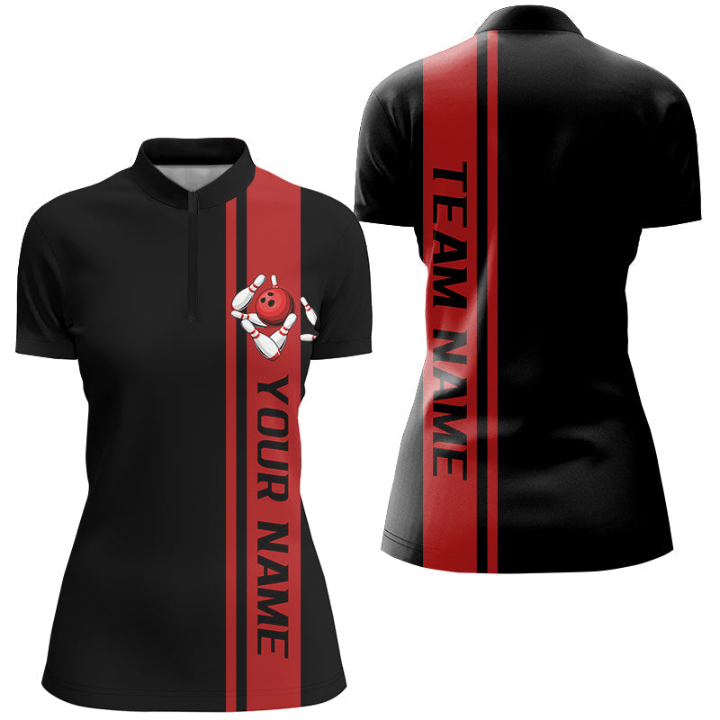 Black And Red Custom Classic Ladies Bowling Shirts, Bowling Uniform Bowling Jersey For Team IPHW7685